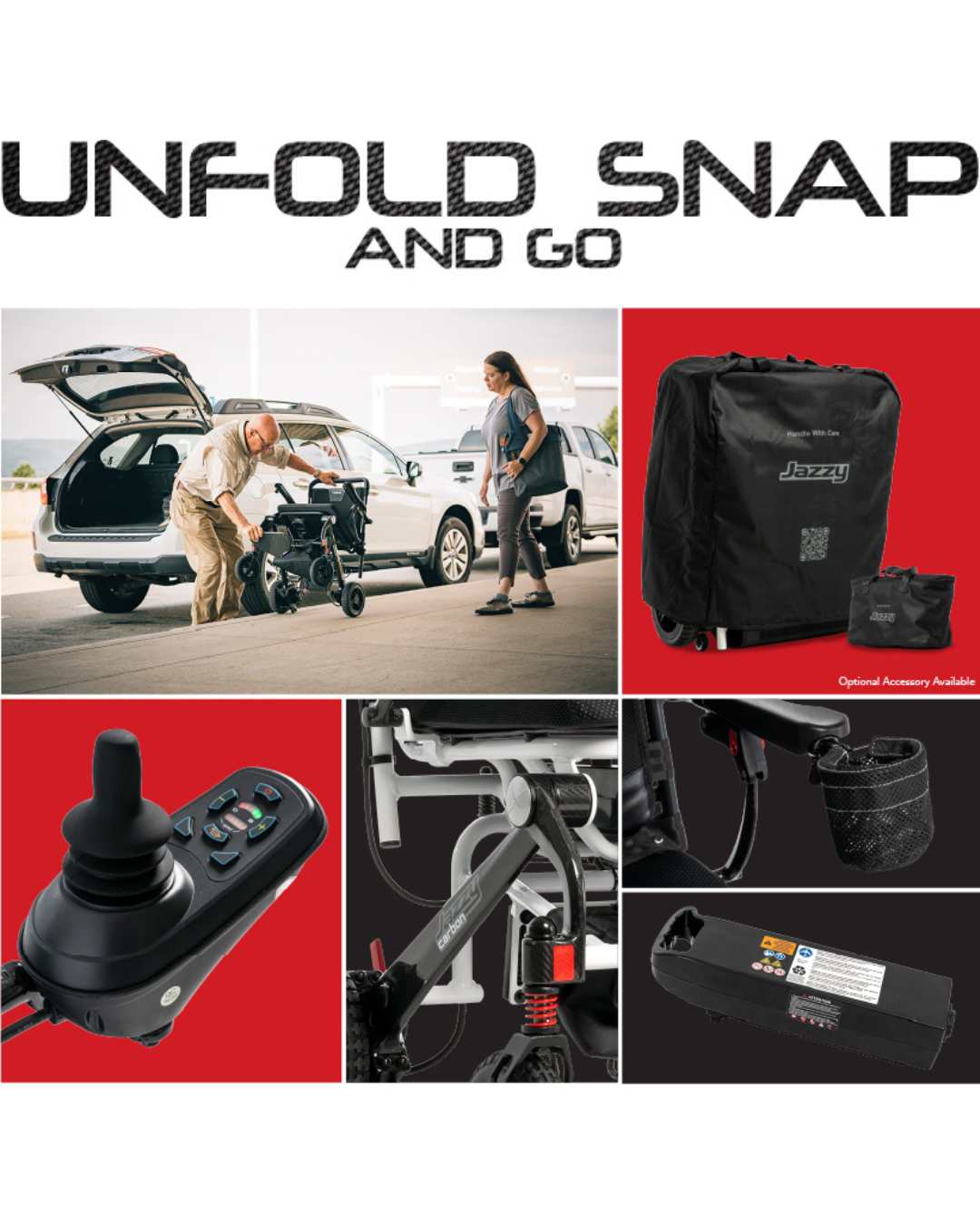 Thanks to an all-carbon fiber frame and a lithium battery, it’s durable enough to power you through airport terminals, yet light enough for convenient storage in car trunks. In fact, this power wheelchair weighs a remarkable 33 pounds – it’s our lightest Jazzy yet!